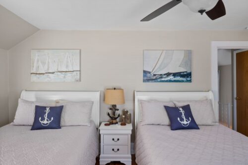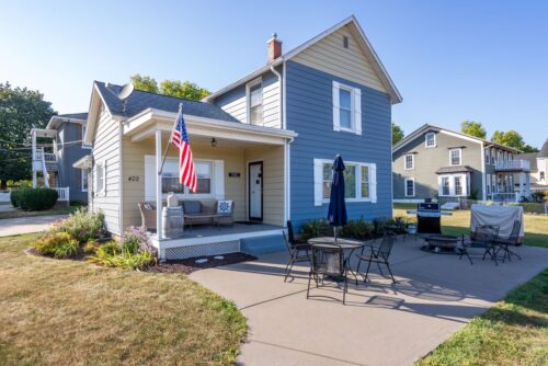 With a fresh nautical look, this space fits perfectly on the edge of the Mississippi River. A great place for larger groups, with charm and character of 3 bedrooms and 2 baths decorated for the river! The primary bedroom, with a king bed, is on the main floor with a bath attached. Upstairs there are two bedrooms. The first bedroom has a queen bed and a twin bed. The second bedroom has two full size beds. This home sleeps up to 9 guests.
